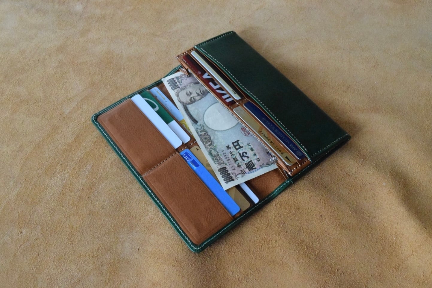 その中でも一番人気のイタリアンレザーを使用した長財布です。この財布の特徴は収納力がありスマートに持てること。