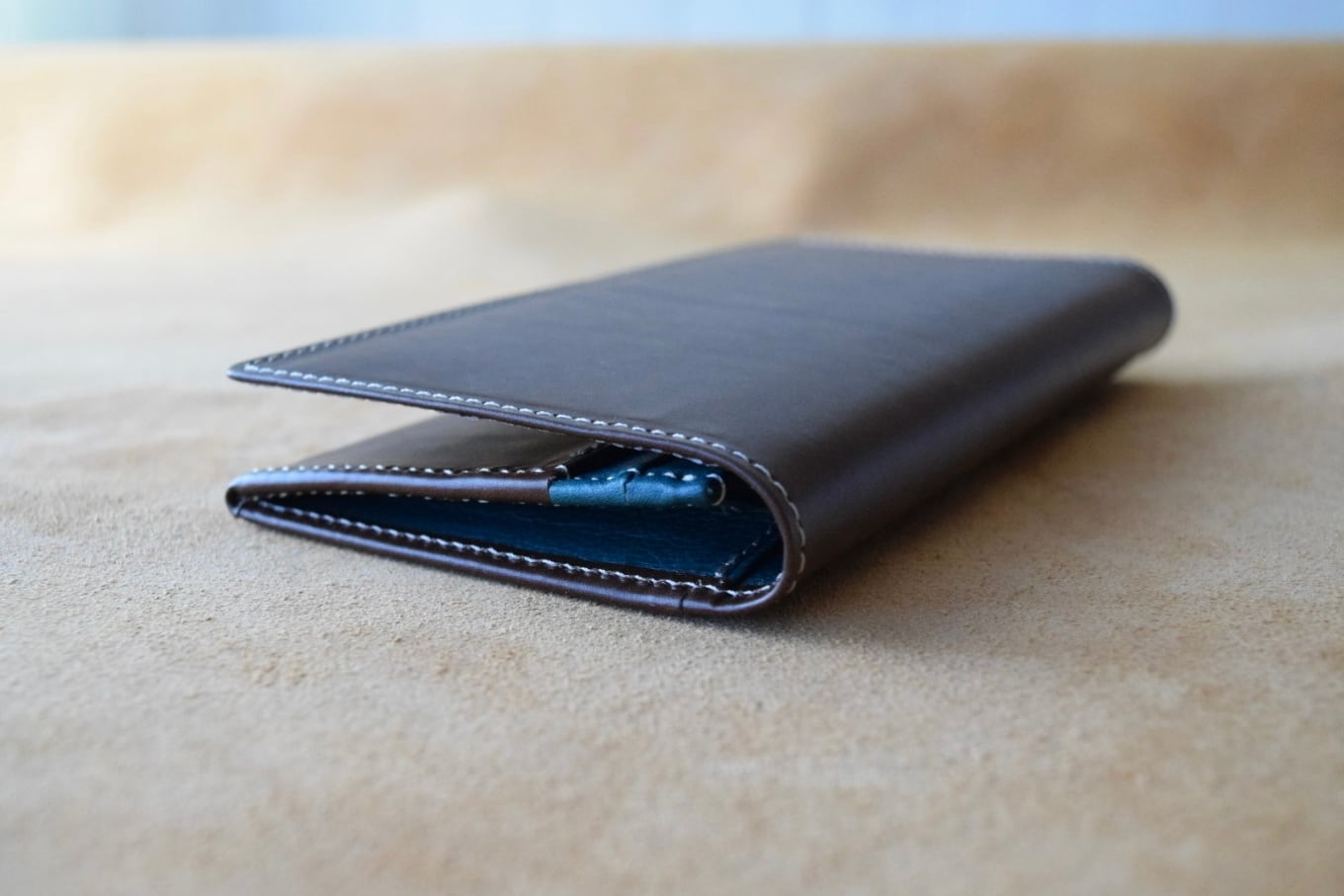 その中でも一番人気のイタリアンレザーを使用した長財布です。この財布の特徴は収納力がありスマートに持てること。