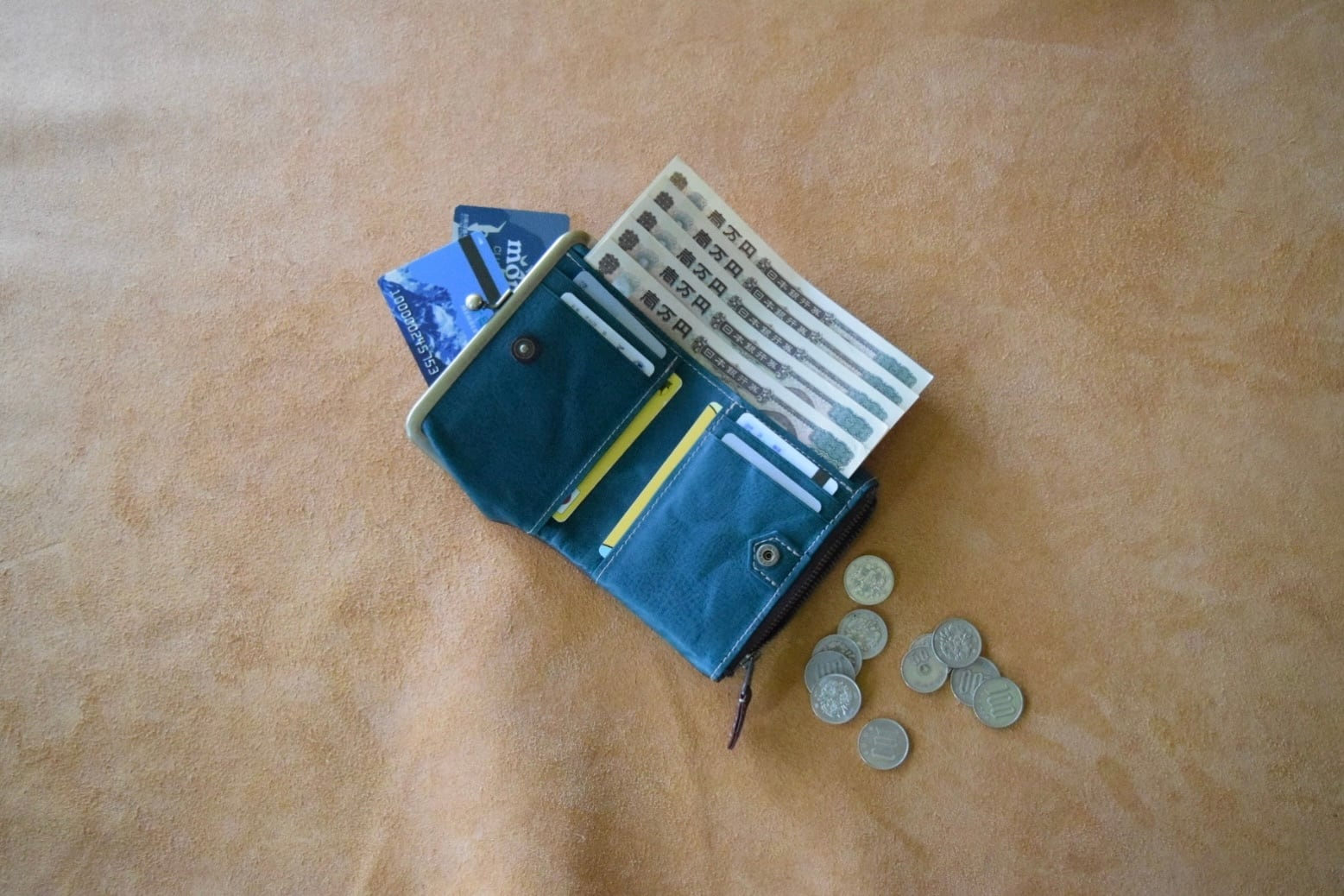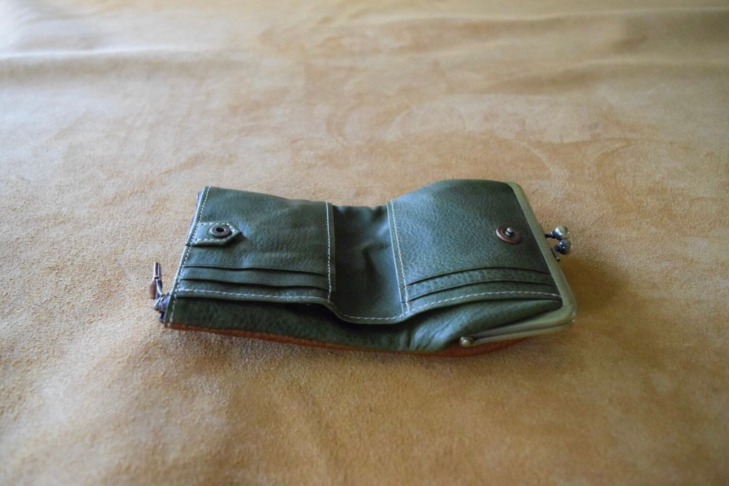 この財布の特徴はコンパクトに見えて収納力がたっぷりなところ。がまぐち部分が大きく開くので中へのアクセスが簡単です。