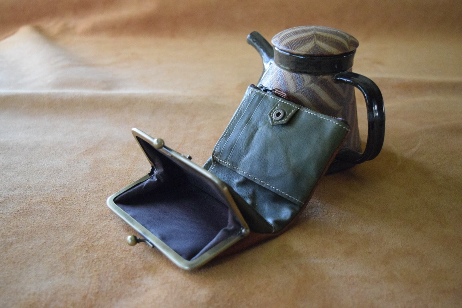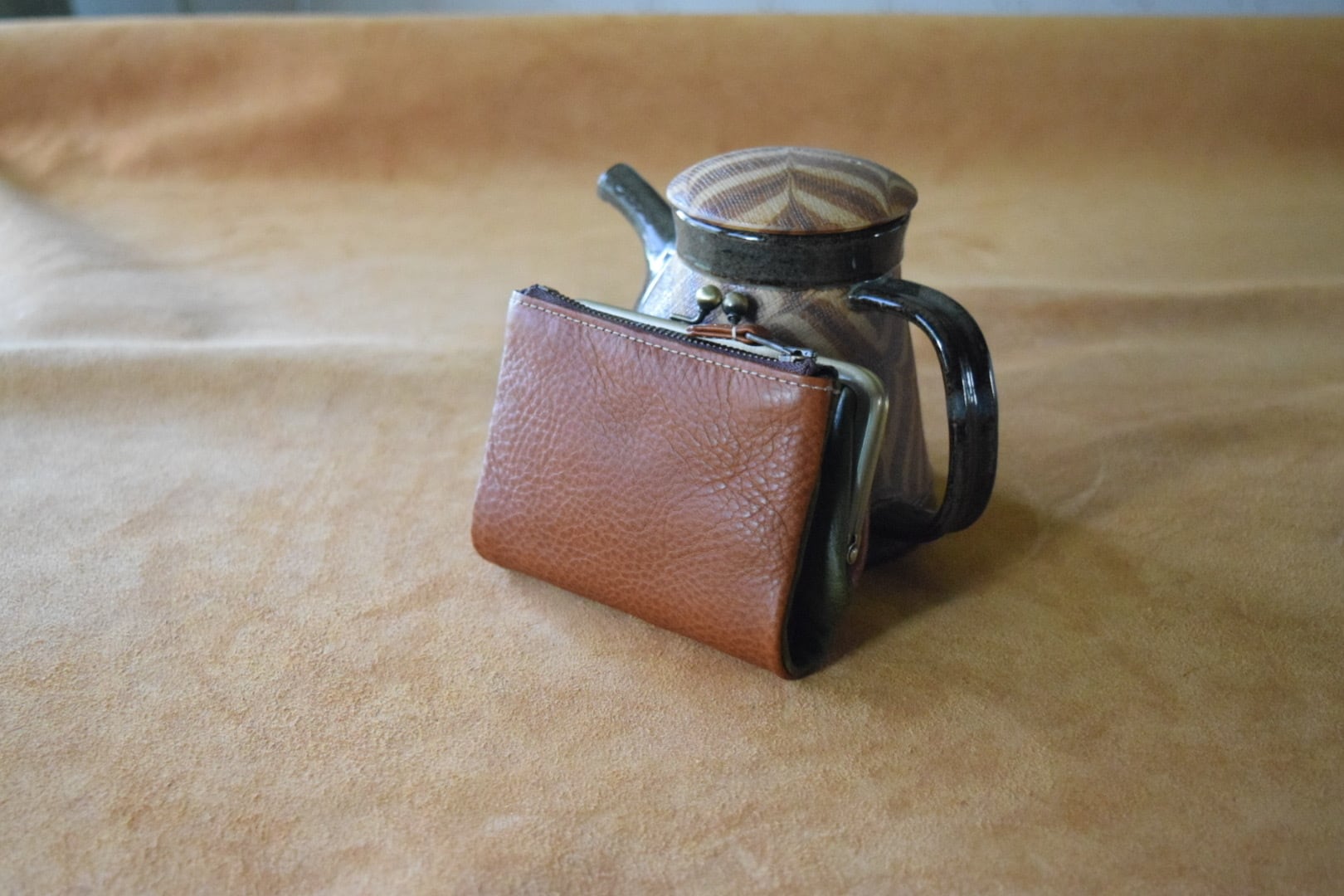 その中でも1番人気のイタリアンレザーを使用した、がまぐち二つ折り財布になります。