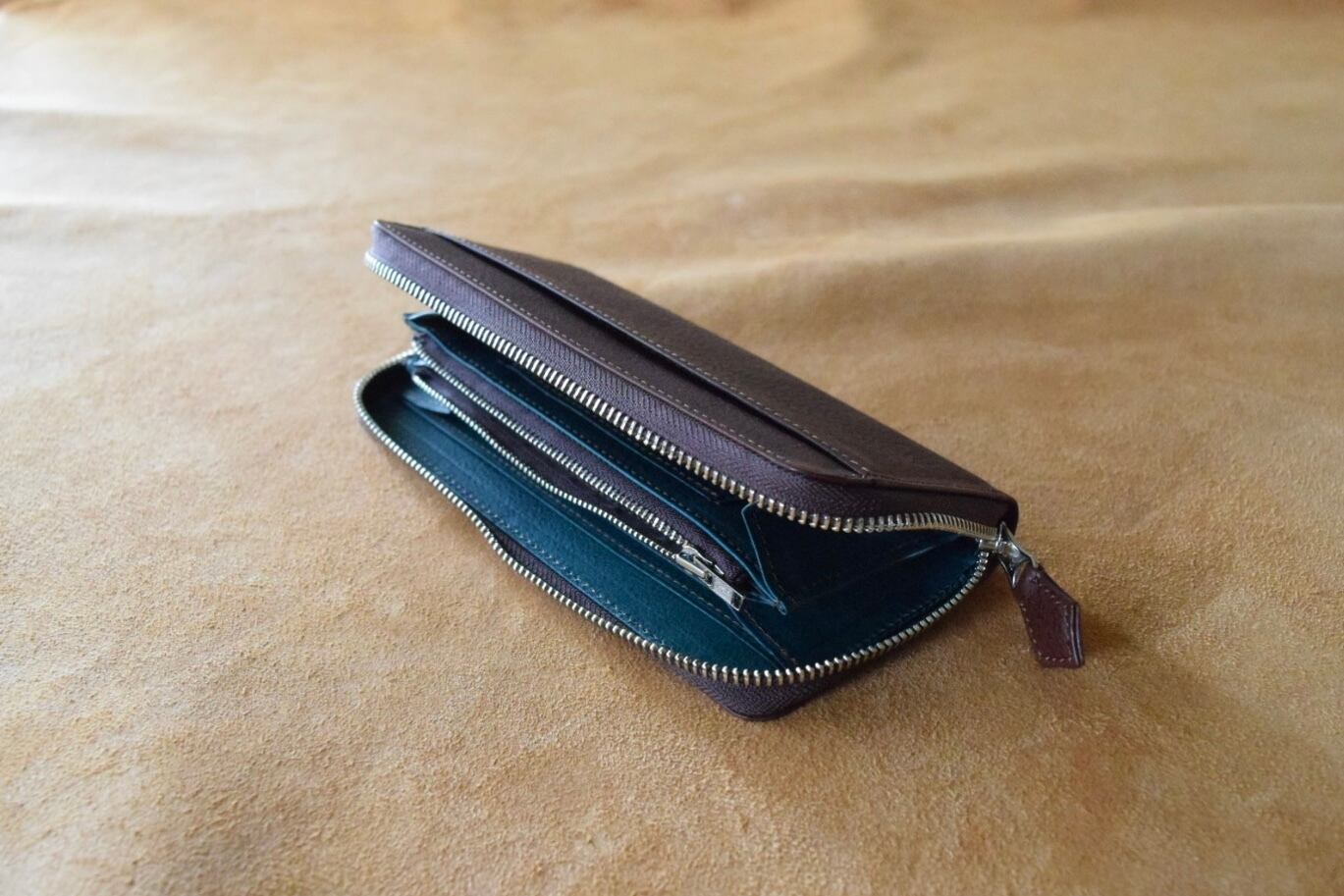 その中でも一番人気のイタリアンレザーを使用した長財布です。この財布の特徴は収納力がありスマートに持てること。